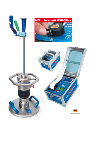 In permanent measuring mode the test is being controlled by the LED of the load plate, without having to handle the smartphone. The phone can comfortably remain inside the jacket when user is doing one test after the other. Measurements with the smartphone can be transmitted via email as PDF file in real time to the client or the office. Texts as client, construction site etc. can be entered via smartphone. Thanks to the camera function of the smartphone it is possible to add a photo of the test point into the protocol.